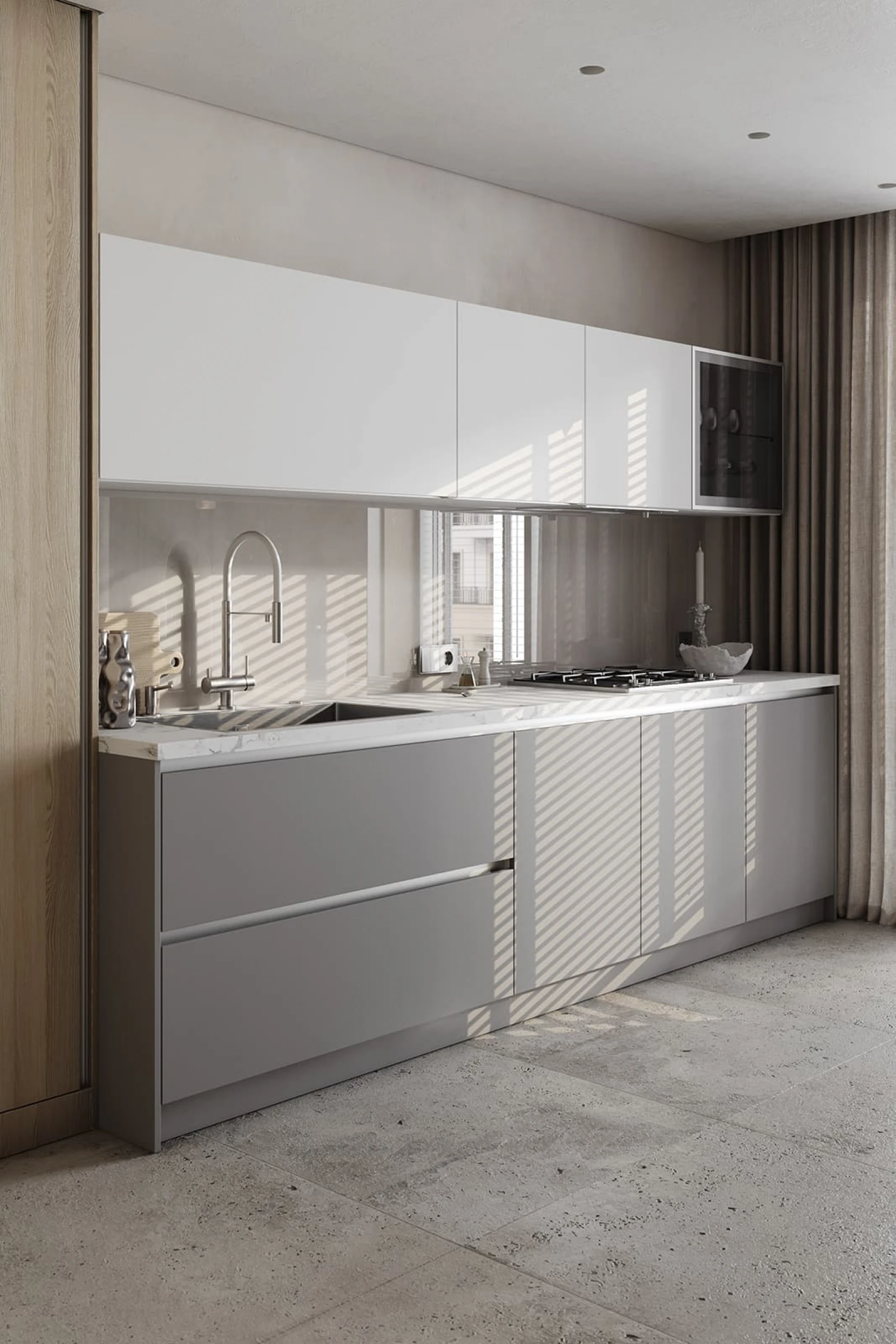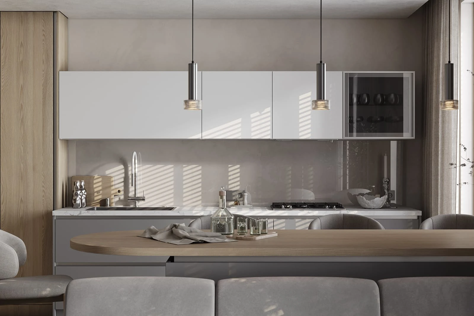 ЛМДФ Тимбер, декор Ясень Наварра / пластик HPL Möbius Soft Touch, цвет Бьянко Фредо / Бартоло,
