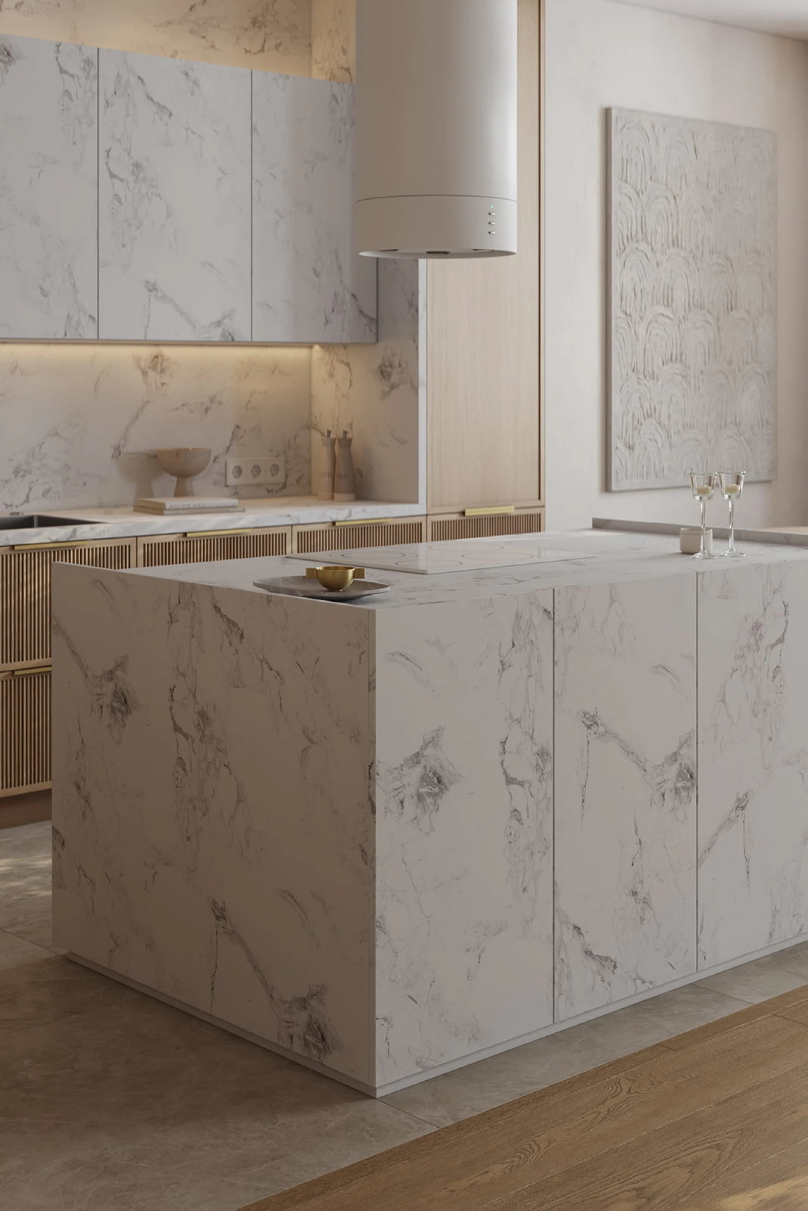 Т431В / Т441 Шпон дуба, цвет #183 (масловоск Бесцветный) / пластик HPL Möbius Soft Touch, декор Мрамор Бернини,