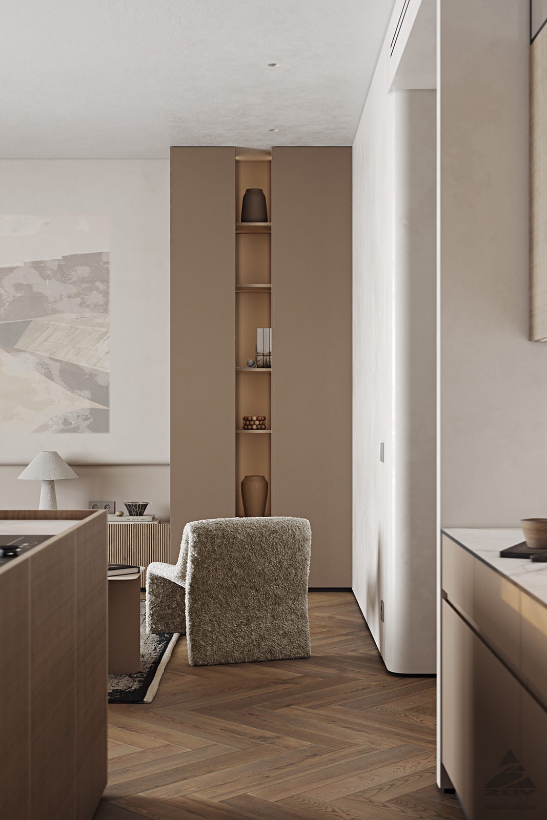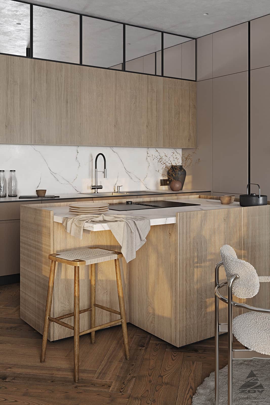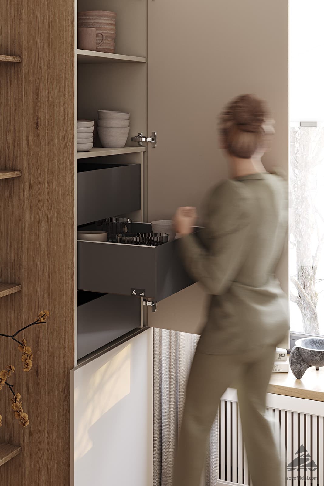 Т440 Шпон дуба, цвет #189 (воскобейц Белый) / акрил FENIX NTM, цвет Серо-бежевый NTM (0748) / крашеная МДФ, цвет NCS S 5010-Y50R Матовый,