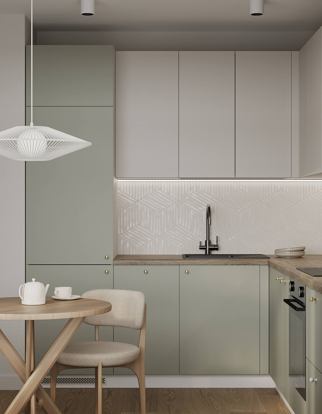 ЛДСП Колор, цвет Зеленый Шалфей / Ангора Серая,