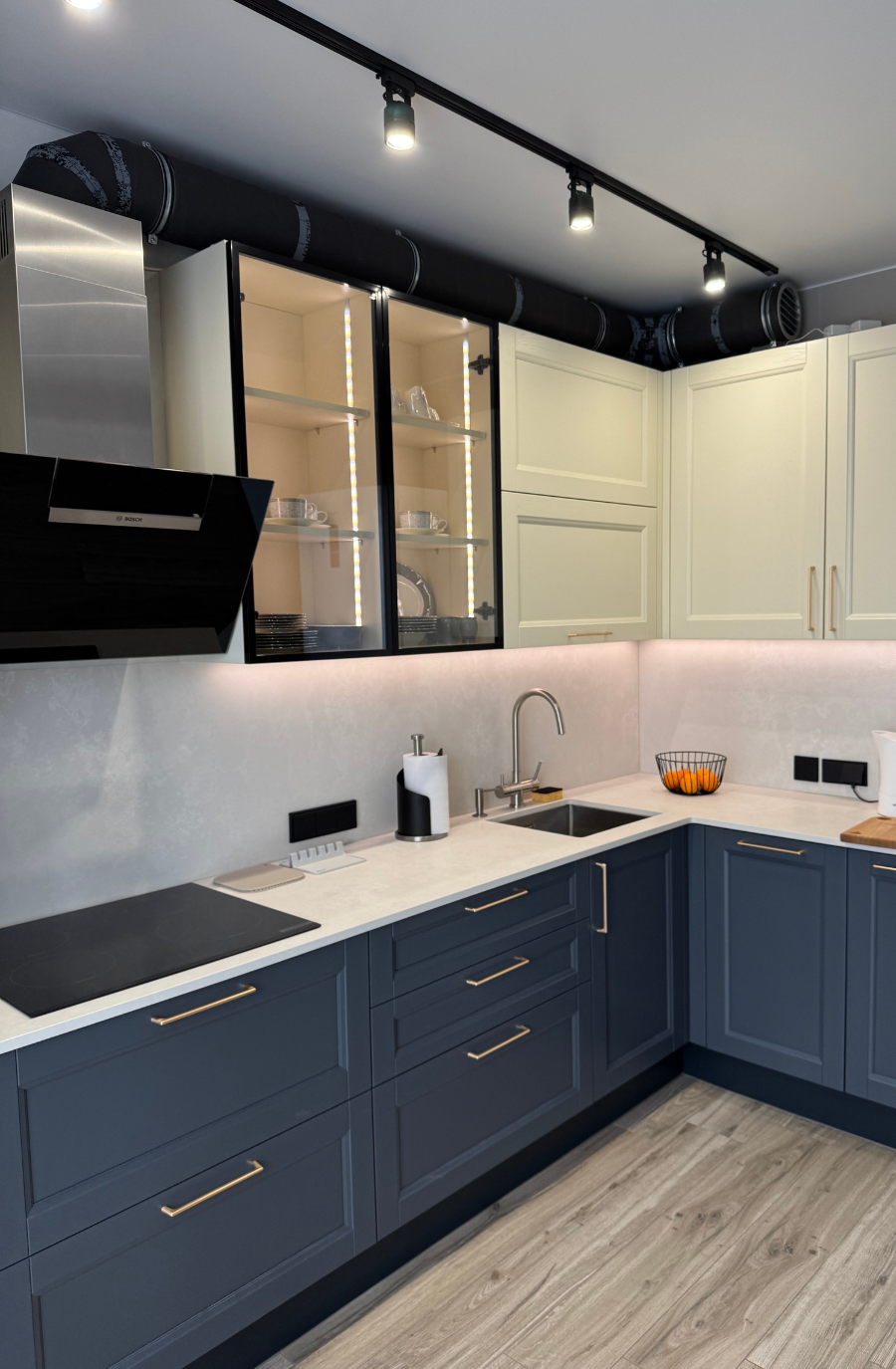 Темно-синяя кухня